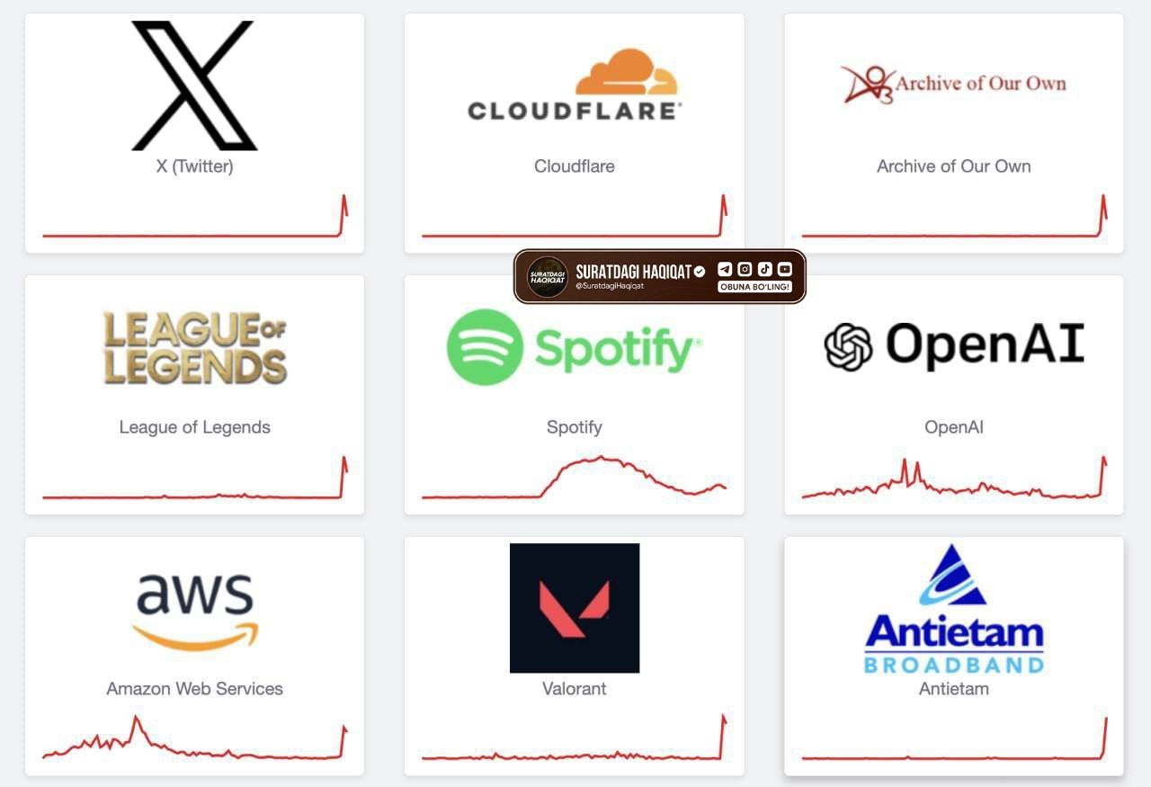 Хабарларга кўра, энг йирик ҳостинг провайдерларидан бири бўлган Cloudflare узилишларга дуч келди. Фойдаланувчилар Spotify ва Yandex Music мусиқа стриминг хизматлари, Х ижтимоий тармоғи, Аmazon веб-ресурслари ва Оpen AI'нинг сунъий интеллект хизматлари, шу жумладан, ChatGPT билан боғлиқ муаммолар ҳақида хабар беришган.