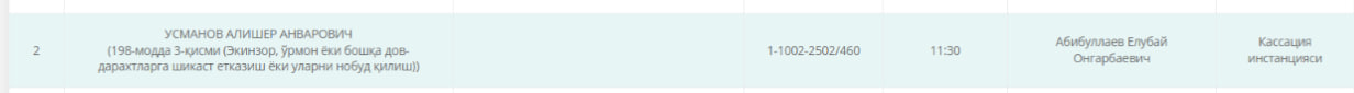 Алишер Усмонов (Анварович) – Навоийда шимолий кон бошқармаси бўлим бошлиғи. Бу одам ҳақида маълумот етарли эмас. Бугун Тошкент шаҳар судида айни шу исм-шарифли инсоннинг иши кассация тартибида кўриб чиқилди. У 198-модда 3-қисми (Экинзор, ўрмон ёки бошқа дов-дарахтларга шикаст етказиш ёки уларни нобуд қилиш) билан судланмоқда.