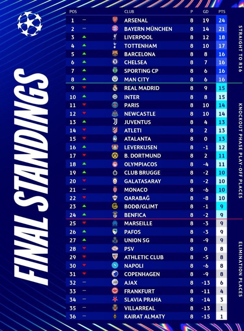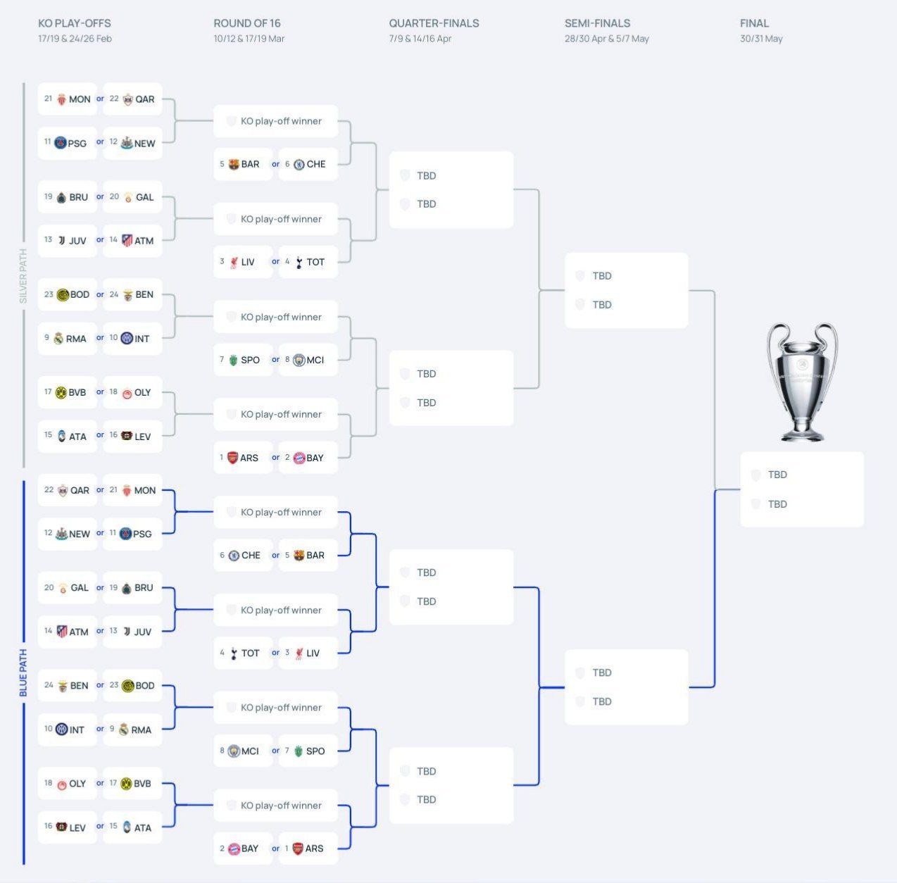 36 та жамоадан жами 24 таси плей-оффга йўл олди. Энг яхши саккизта клуб автоматик равишда 1/8 финалга йўлланма олди, қолганлари эса 1/8 финал учун плей-оффни бошлайди. Плей-офф иштирокчиларининг потенциал рақиблари аллақачон аниқланган.