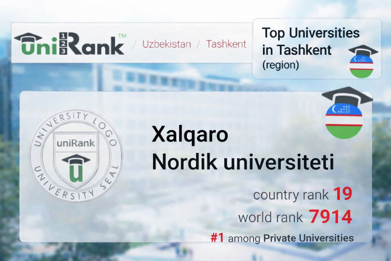 Нуфузли халқаро платформа — uniRank-2025 рейтингига кўра, Халқаро Нордик университети (НИУ) Ўзбекистон бўйича ТОП–20 таликда — 19-ўрин, хусусий олийгоҳлар орасида — 1-ўринда қайд этилди.