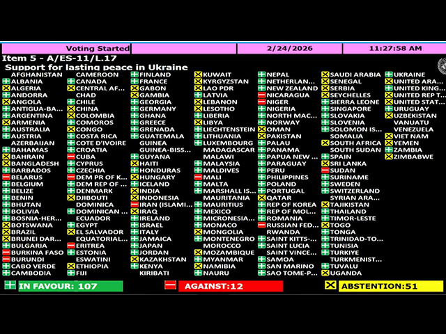 Ҳужжатни 107 давлат қўллаб-қувватлади. Россия ва Беларус каби 12 давлат қарши овоз берди.